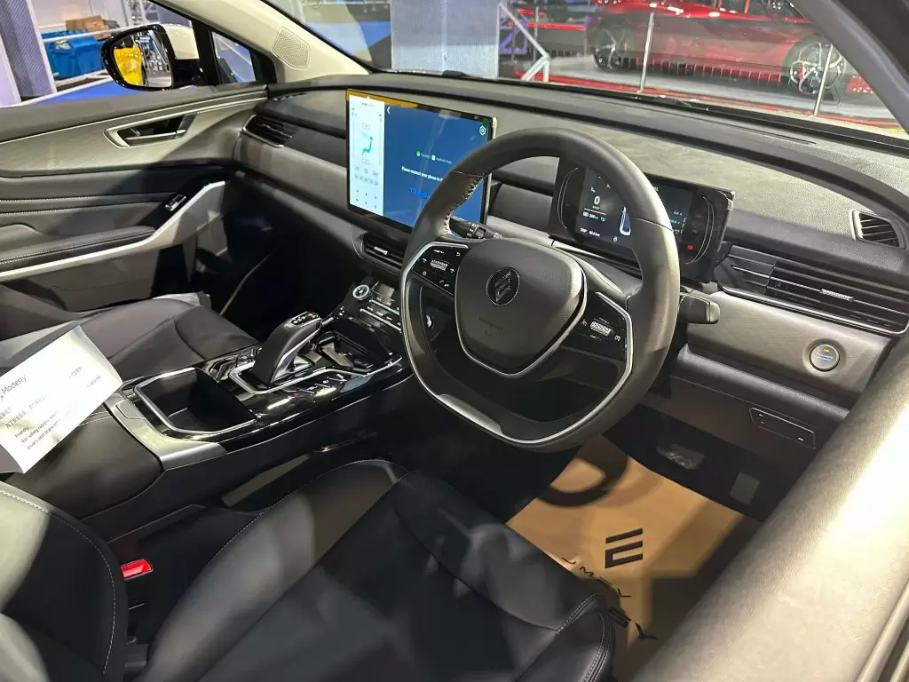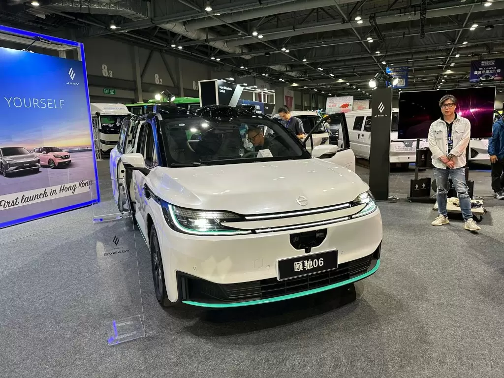 我們之前也談過由雷諾跟內地江鈴汽車集團合組嘅新品牌 JMEV 將會到港,果然在今次車展上見到代理帶來多款新車,包括眼前這款開價由 16.8萬起嘅 Eveasy GSE 四門三廂式房車,造型驟眼望來似足 Model 3,港版有普通續航(400公里)和長續航(525公里)兩款,但未知配單摩打還是雙摩打,前者輸出 150匹馬力及 225Nm 扭力,後者則有 230匹馬力及 395Nm 扭力。現場所見,車廂佈局帶有法國車影子,尤其波棍造型更似足同鄉標緻出品。代理表示該車最快明年第二季便可交車,稍後更會安排我們試車。