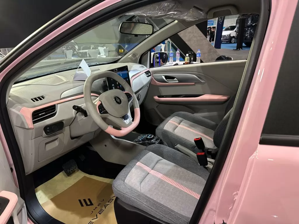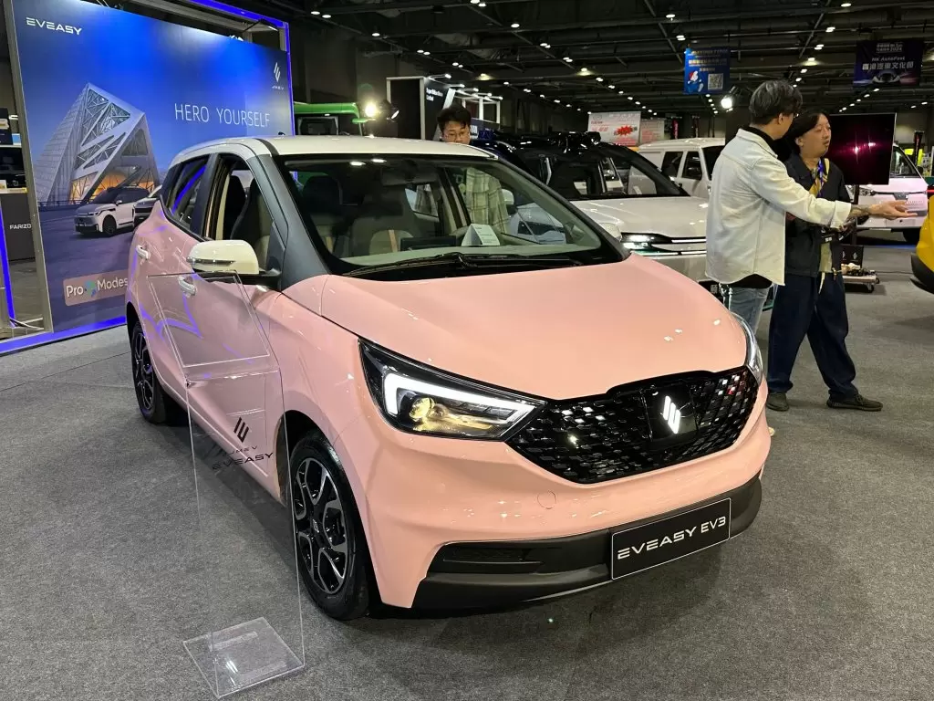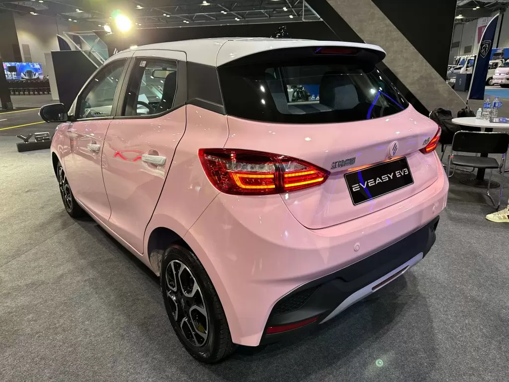 代理今次帶來四款新車,其中包括這款粉紅色的 Eveasy EV3,據知稍後上市的意向價僅 12萬左右,主打年輕人市場。外形十分細小的 EV3,長 3.72米、闊 1.64米、高 1.53米,輪距 2.39米,略較 K-car 為大。由於體形不大,所以只配 31.15kWh 電池(續航330公里),前置單摩打可輸出 54匹馬力及 110Nm 扭力。