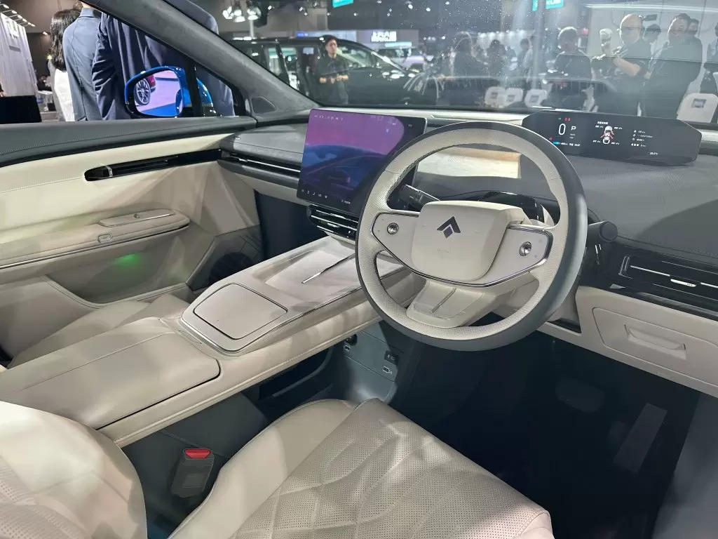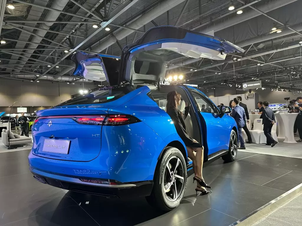 這款話題性十足的四門三廂式房車 Hyptec HT,有鷗翼車門(類似 Model X)和普通車門兩款選擇,同時廠方亦在會場上宣佈兩新車在港定價,前者鷗翼門定價 33.98萬,後者則 26.88萬,定價非常進取。至於車身尺碼方面,長 4.93米、闊 1.92米、高 1.7米,輪距 2.93米,屬中大型房車設計,從現場簡報得知,後門鷗翼開啟角度和時間比對手快。動力組合方面,港版配 72.7kWh彈匣電池和後置單摩打,換來 244匹馬力及 355Nm 扭力,續航可達 600公里(CLTC)。其實已不是第一次見到 Hyptec HT,但今次在極有 vibe 的 GAC 展台上,更覺它充滿獨特魅力,車身的線條流暢又硬朗,處處突顯出科技的魅力,每一個細節都在展示與眾不同的特色,我認為這是一款非常用心的產品。另外,快充技術和續航能力更是令人驚喜。